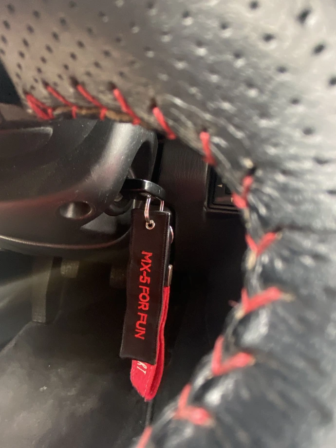 De sleutelhanger op de foto is een uniek item met een creatief ontwerp dat perfect past bij de stijl van een MX-5. Het is een ideale accessoire om aan je sleutelbos te hangen, waardoor je sleutels een persoonlijke en opvallende uitstraling krijgen.