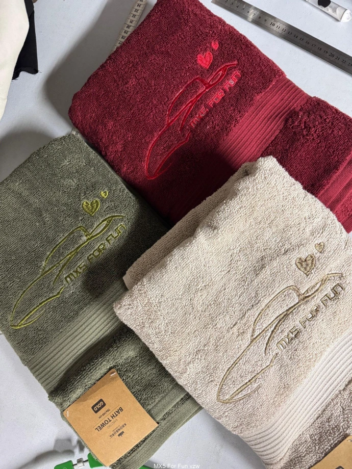 Deze handdoek is een uniek item dat niet alleen praktisch is, maar ook een luxe uitstraling heeft dankzij de toon-op-toon kleurkeuze. Het vakmanschap van ons lid Katinka Broes, die deze handdoeken met zorg heeft gestikt, maakt het tot een bijzonder en waardevol bezit.
